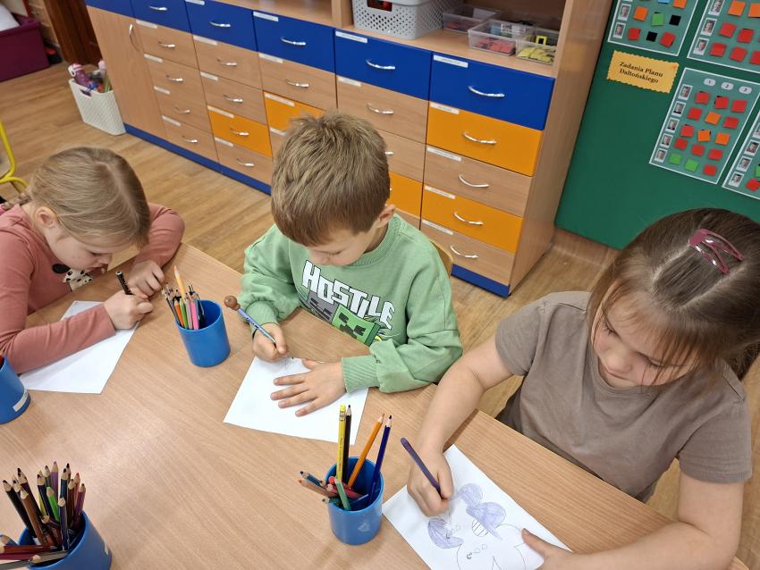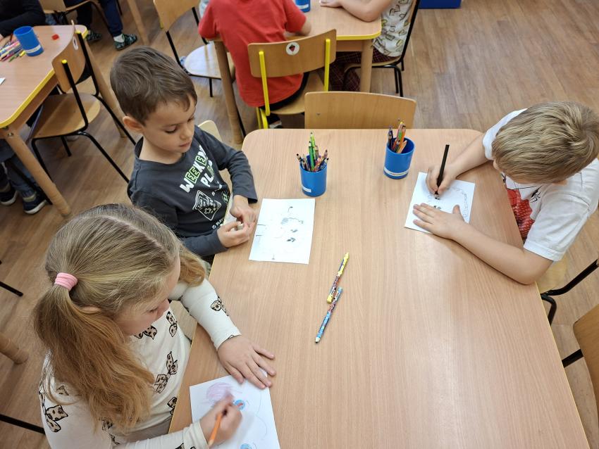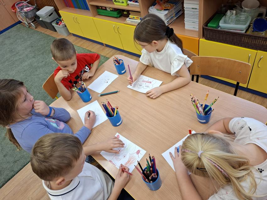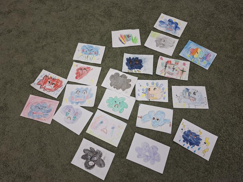 Przedszlolaki w tygodniu poświęconym emocjom realizowały projekt edukacyjny W KRAINIE UCZUĆ? BAJKOTERAPIA Z AUTORSKIMI OPOWIŚCIAMI DLA PRZEDSZKOLAKÓW. Po wysłuchaniu opowieści o emocji GNIEWIE poznały techniki radzenia sobie z tą trudną emocją. Na początek dzieci ćwiczyły oddech z wykorzystaniem piórka jako techniki świadomego regulowania oddychania. Potem przeliczały do dziesięciu, które to równiez pomaga w opanowaniu gniewu. Na końcu rysowały chmurkę, wyrażającą swoje gniewne nastroje. Warto pamiętać, aby zachęcać dzieci do otwartej rozmowy o swoich uczuciach. W czasie zajęć każdy przedszkolak opowiadał jak się czuł, kiedy był rozgniewany?