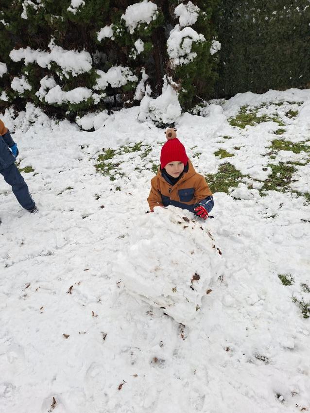 Przedszkolaki ogromnie cieszyły się z pojawienia pierwszego śniegu. Szkoda, że tak szybko topnieje. Z entuzjazmem toczyły kule śniegowe, robiły aniołki, wydeptywały ślady i biegały po ogrodzie przedszkolnym, a uśmiechy nie schodziły ze szczęśliwych buzi. Mamy nadzieję, że biała zima wkrótce powróci.