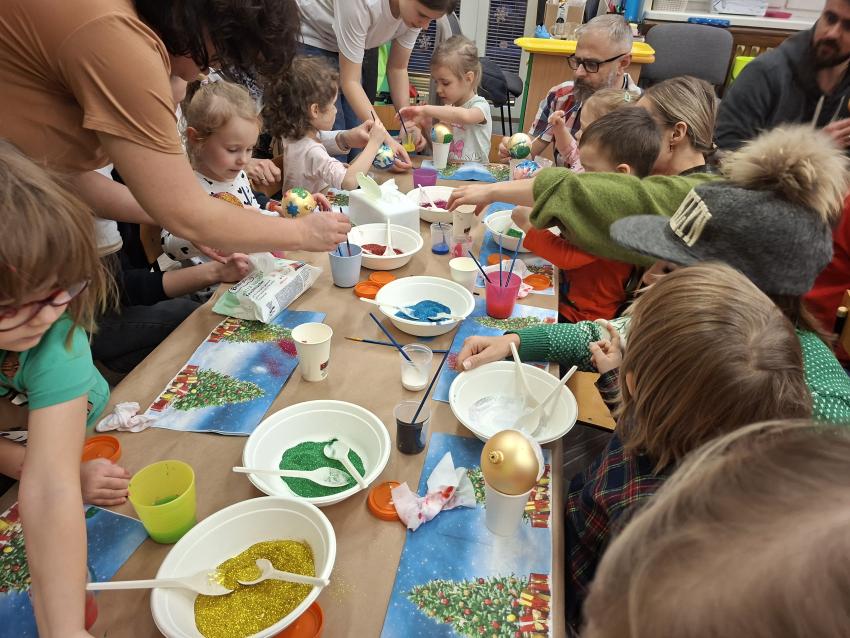 W grupie Pszczółek odbyły się cudowne warsztaty świąteczne, na których ozdabialiśmy bombki choinkowe. Wszystkie Dzieci wraz z Rodzicami, stworzyły niesamowite, małe dzieła, które z pewnością będą im towarzyszyły podczas zbliżających się Świąt. Bardzo dziękujemy Rodzicom Liwii za przygotowanie warsztatów i przedstawienie piękna tworzenia baniek!