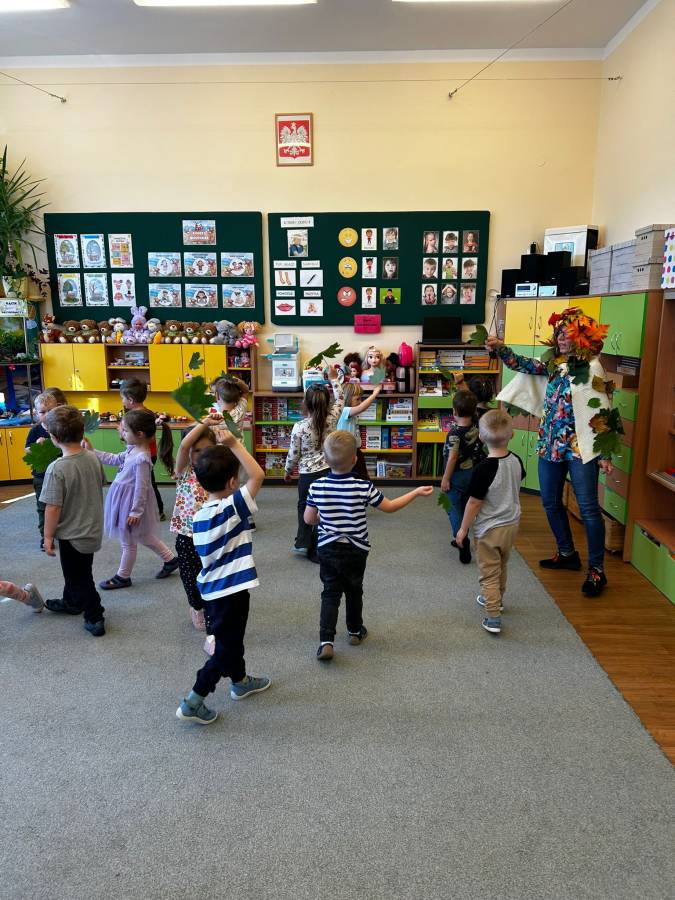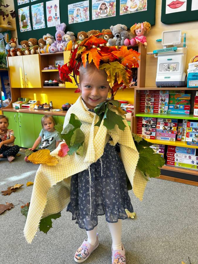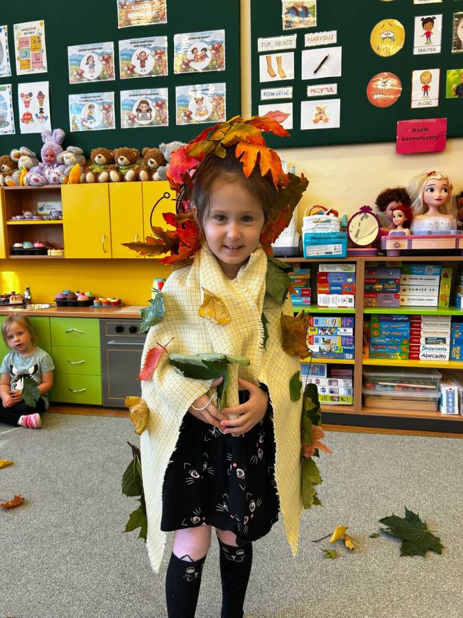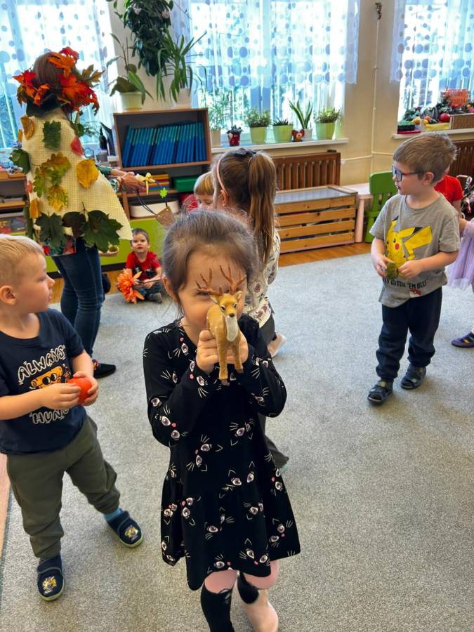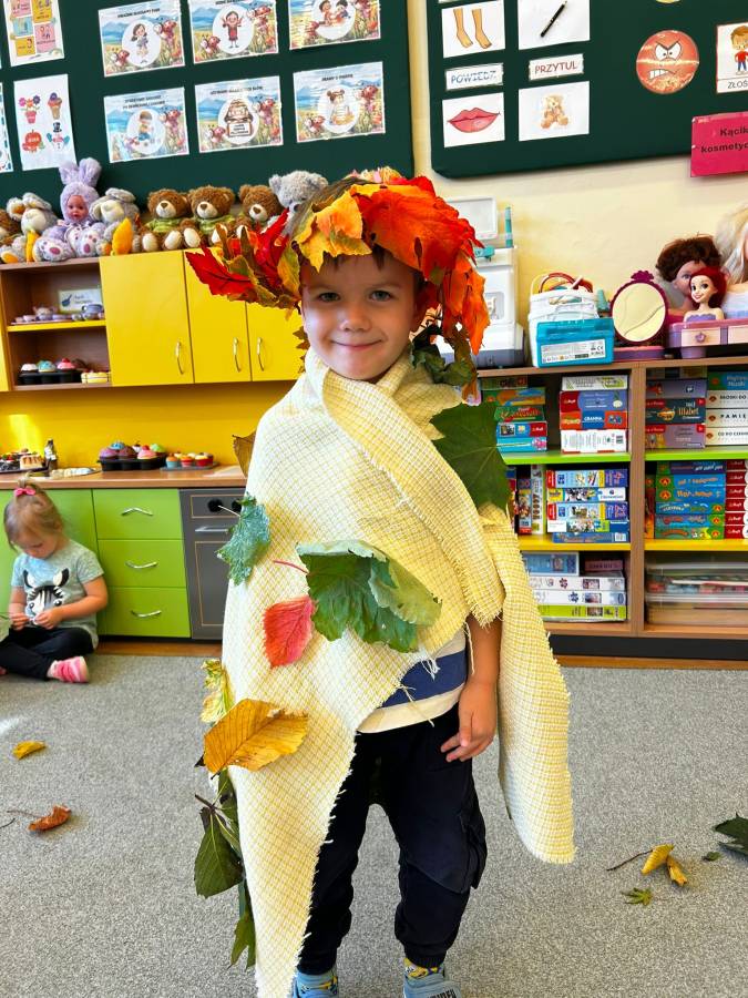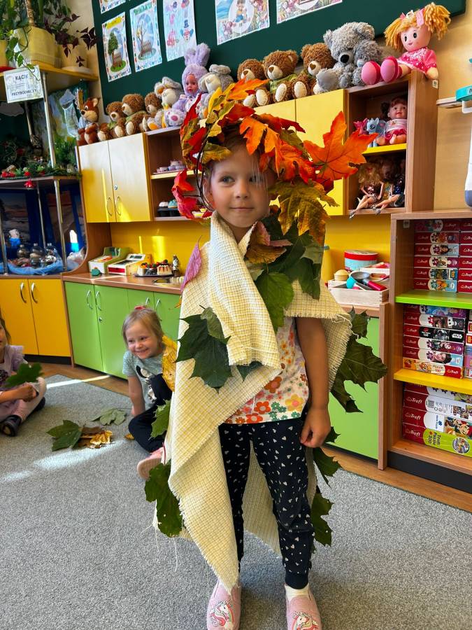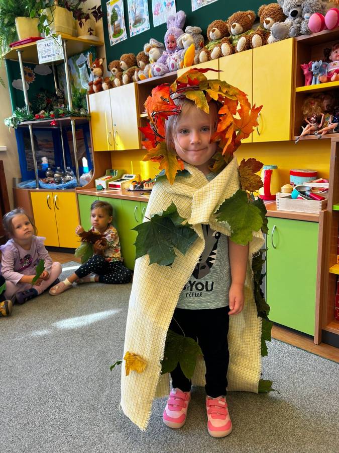 Dzisiaj Biedroneczki odwiedził gość specjalny - Pani Jesień. Opowiadała o swoich darach i coś wspominała, że już niedługo u nas zagości. Wspólnie tańczyliśmy i śpiewaliśmy, a na koniec każdy mógł się poczuć wyjątkowo zakładając jej płaszcz.