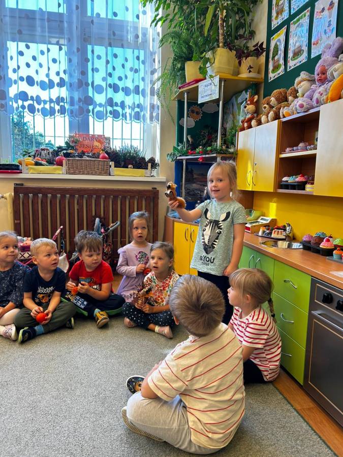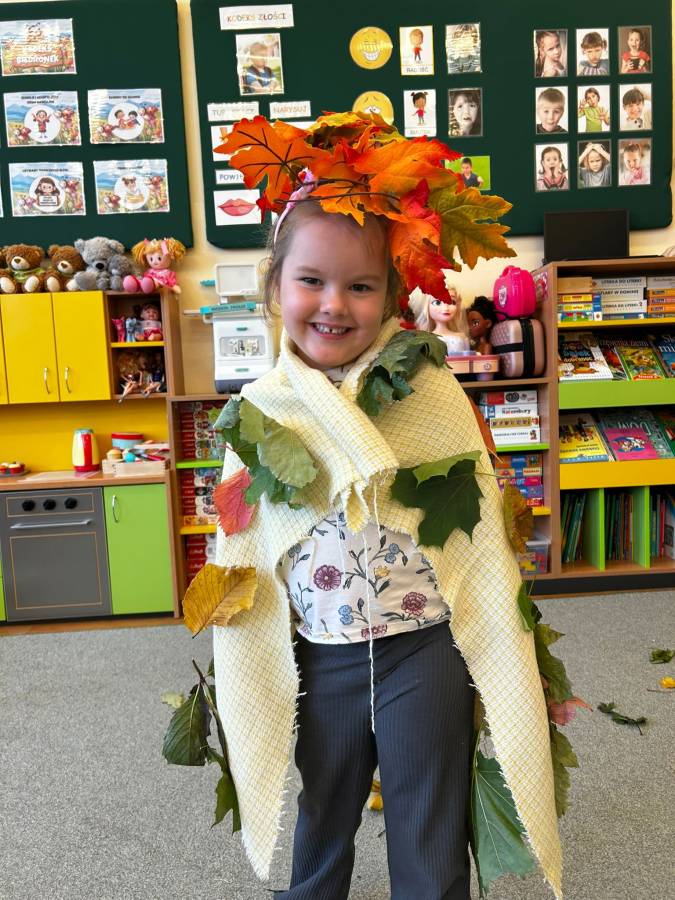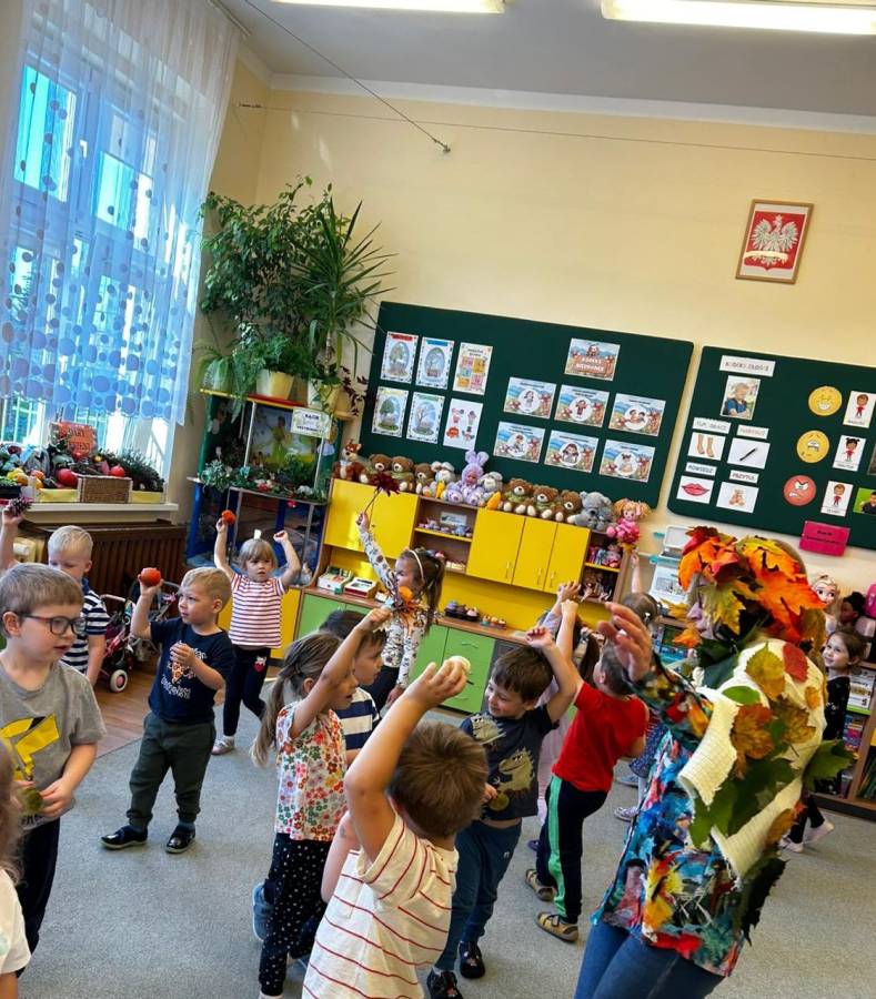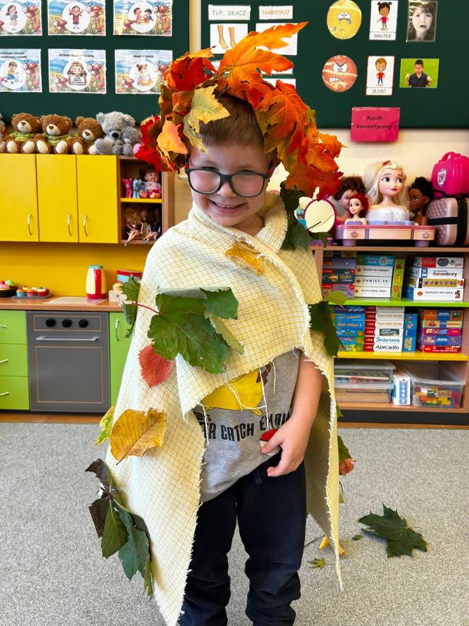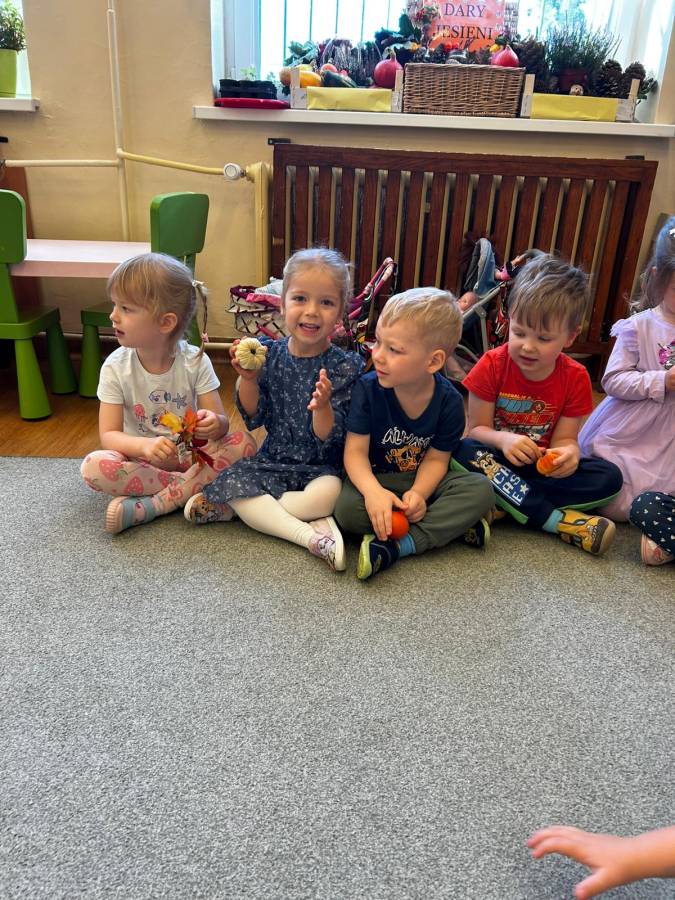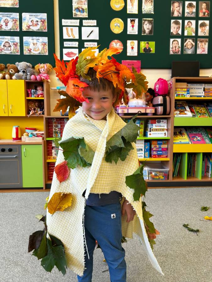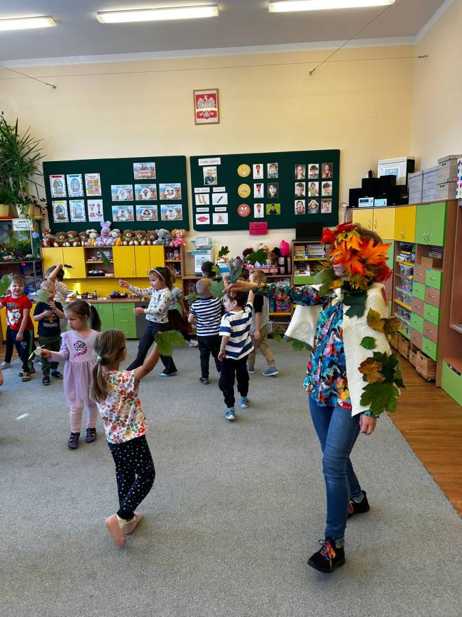 Dzisiaj Biedroneczki odwiedził gość specjalny - Pani Jesień. Opowiadała o swoich darach i coś wspominała, że już niedługo u nas zagości. Wspólnie tańczyliśmy i śpiewaliśmy, a na koniec każdy mógł się poczuć wyjątkowo zakładając jej płaszcz.