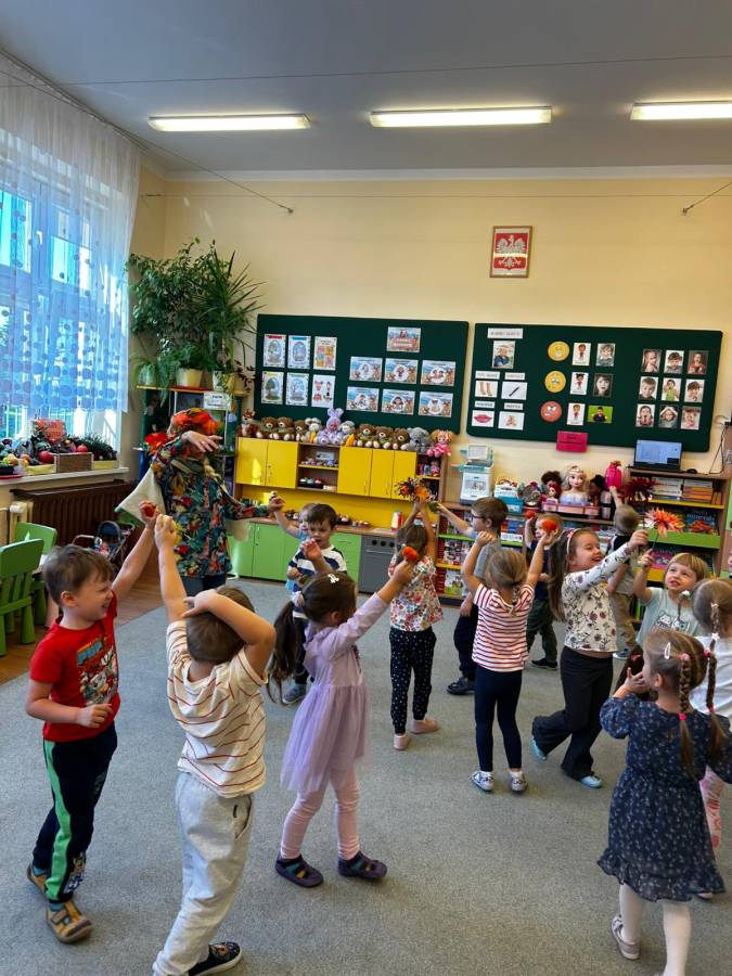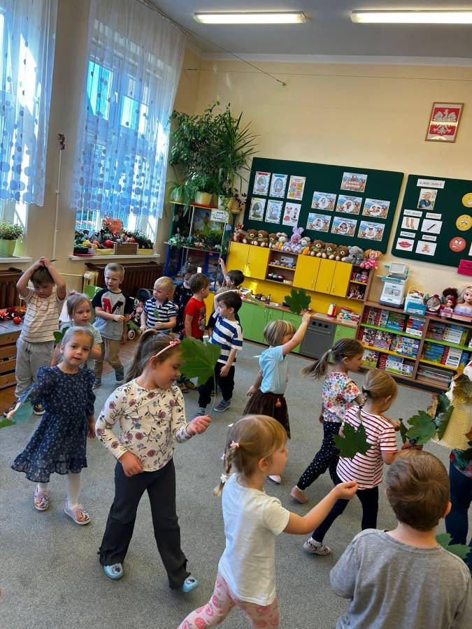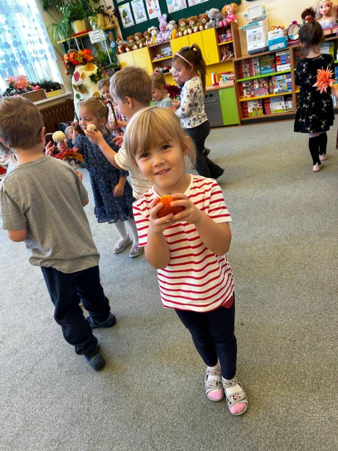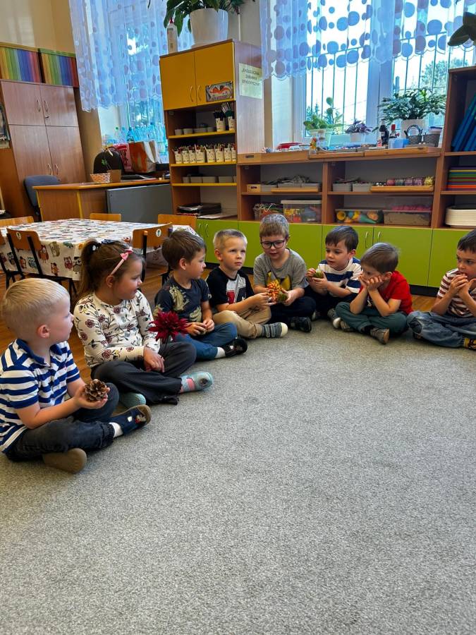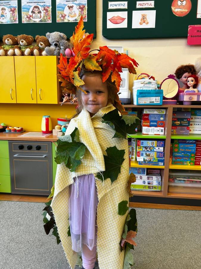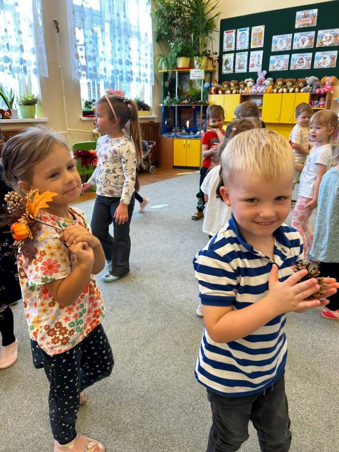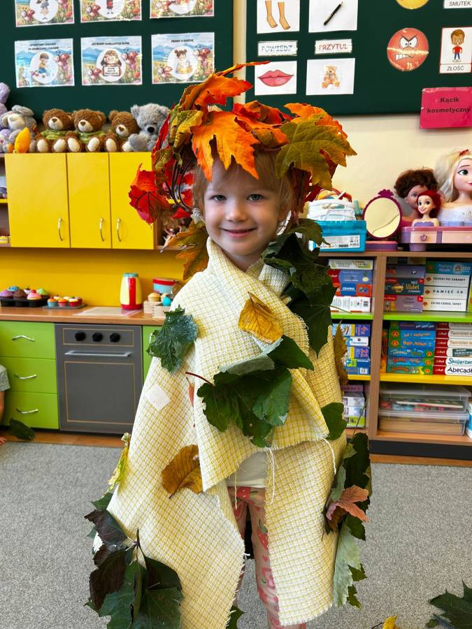 Dzisiaj Biedroneczki odwiedził gość specjalny - Pani Jesień. Opowiadała o swoich darach i coś wspominała, że już niedługo u nas zagości. Wspólnie tańczyliśmy i śpiewaliśmy, a na koniec każdy mógł się poczuć wyjątkowo zakładając jej płaszcz.