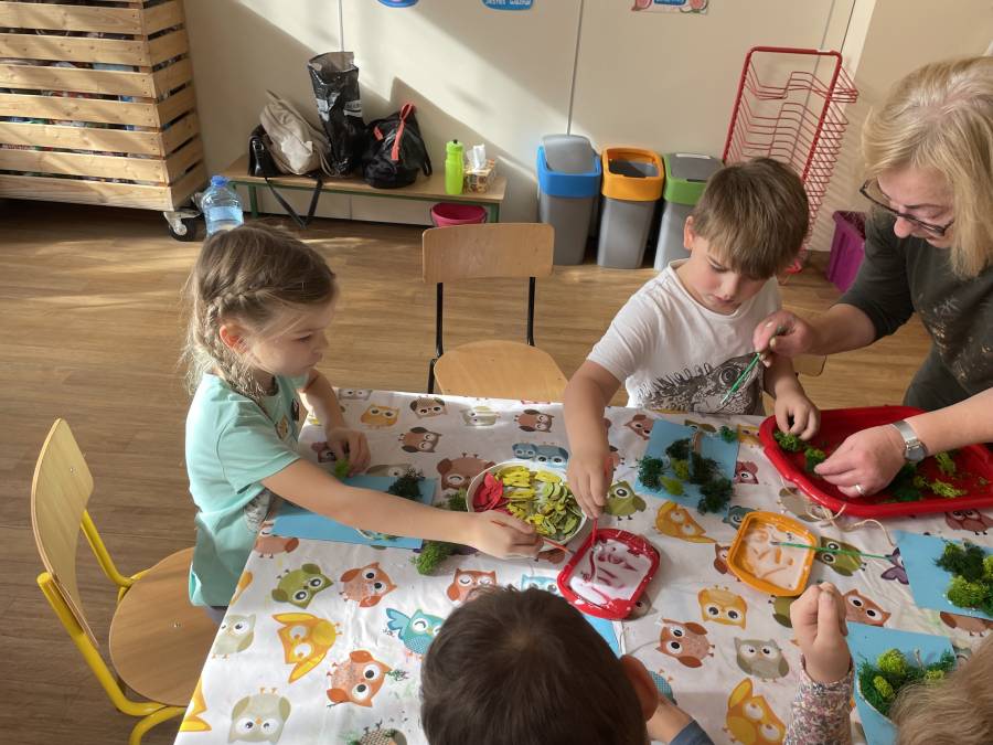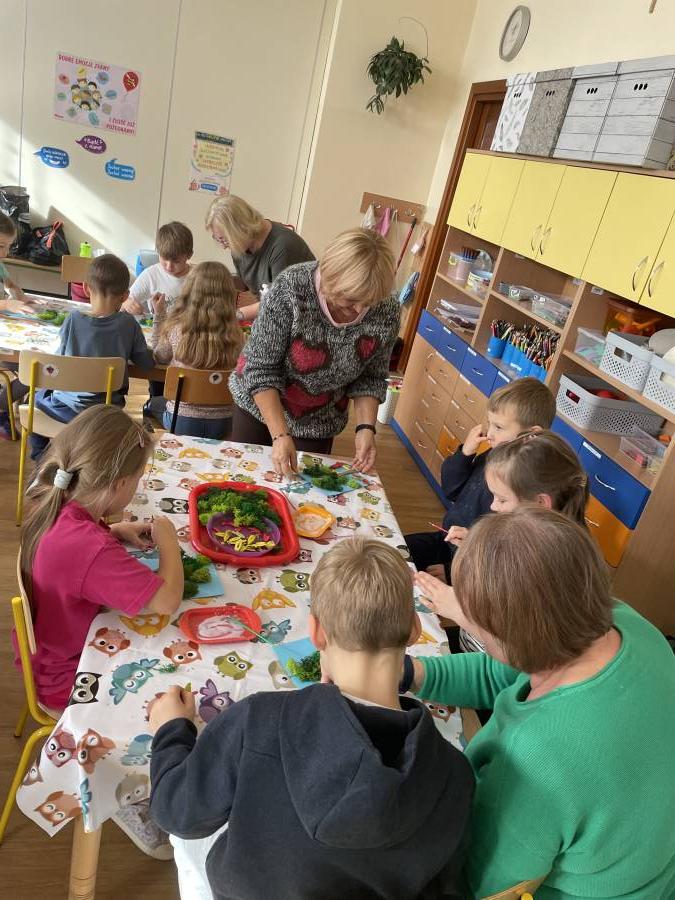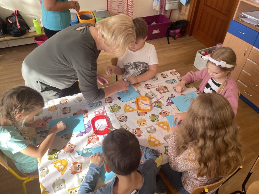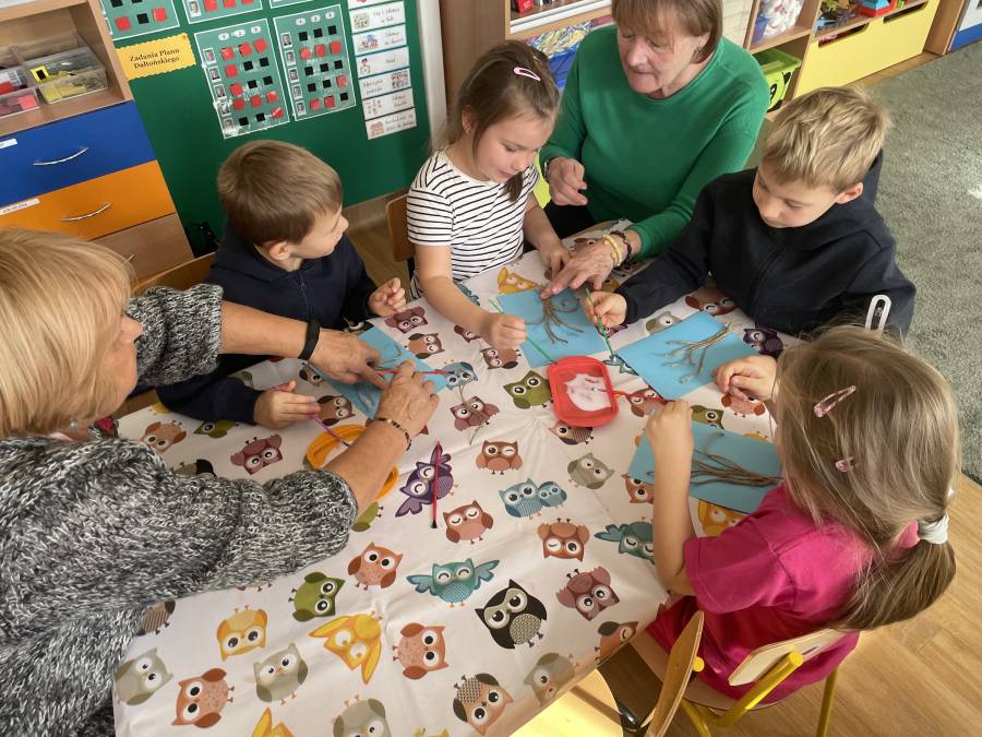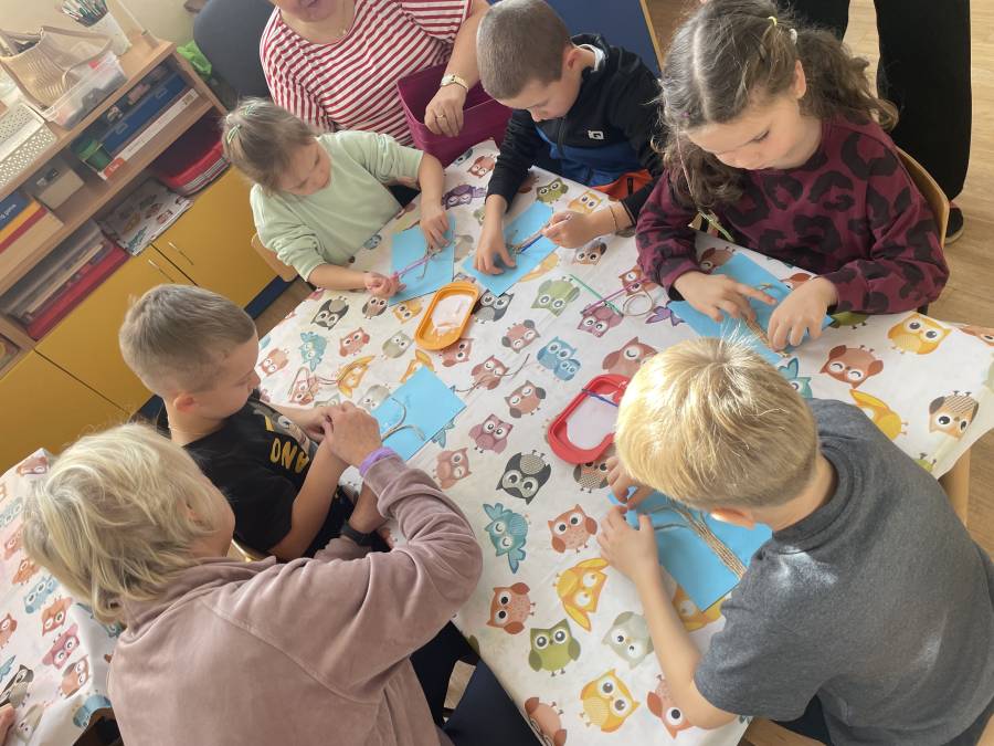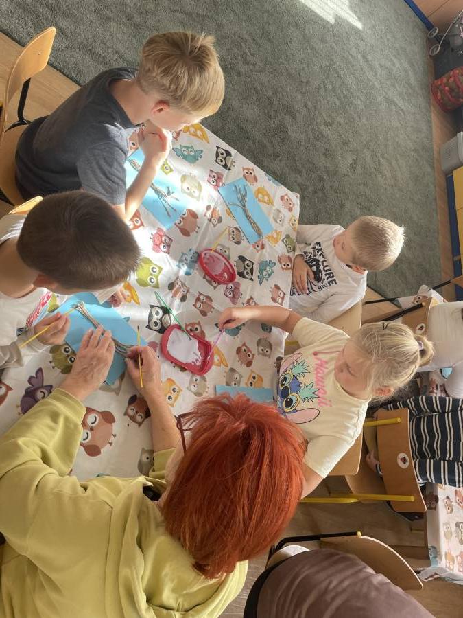 2025-10-21 Mróweczki podczas warsztatów plastycznych z Seniorkami