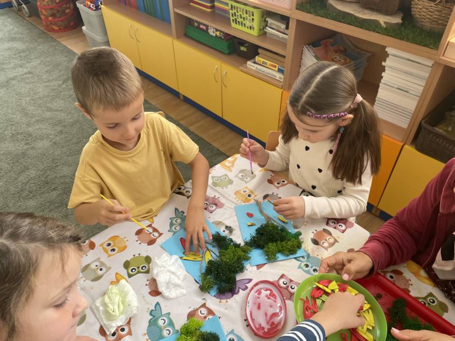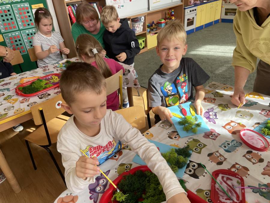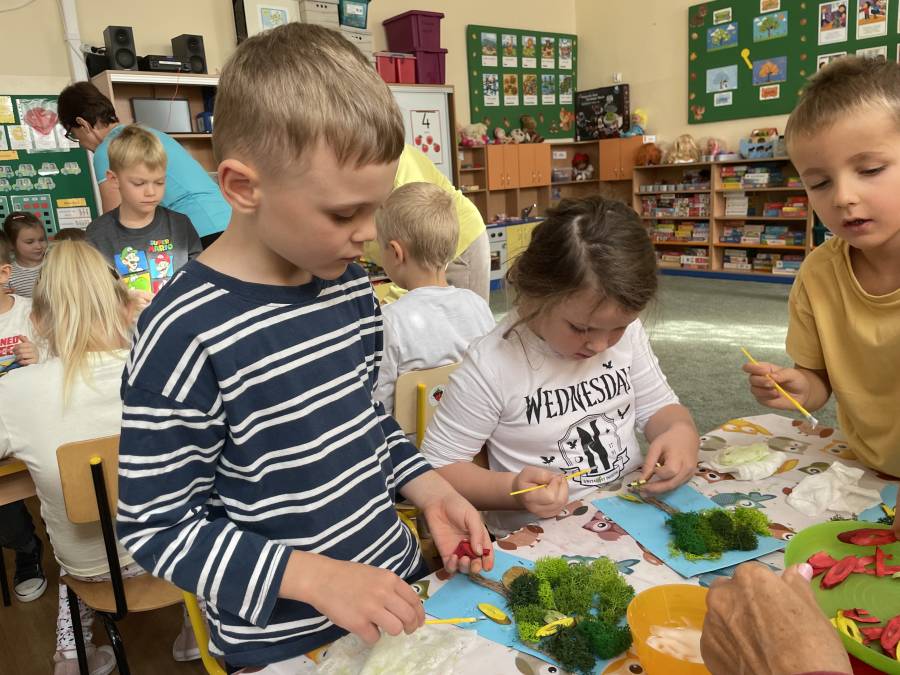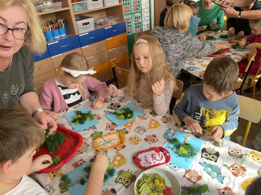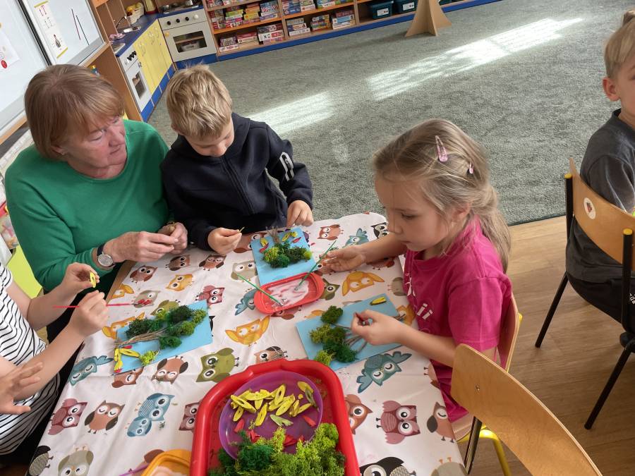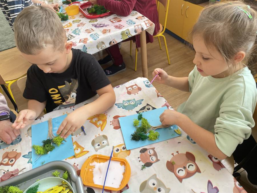 2025-10-21 Mróweczki podczas warsztatów plastycznych z Seniorkami