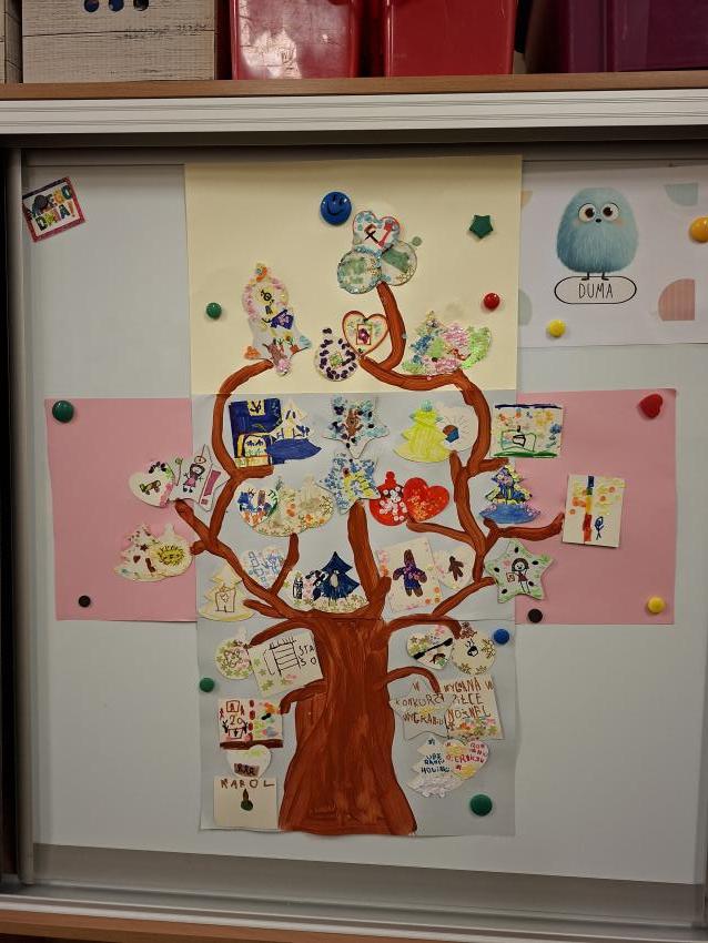 Przedszkolaki z grupy MRÓWECZKI w kolejnej odsłonie projektu edukacyjnego W KRAINIE UCZUĆ - BAJKOTERAPII z autorskimi opowieściami poznały emocję DUMA. Po wysłuchaniu opowieści o Zosi i magicznym kwiatku dzieliły się swoimi przeżyciami i sytuacjami związanymi z emocją duma. Dzieci najczęściej wspominały wydarzenia związane z uczestnictwem w konkursach i zawodach oraz zastanawiały się w jakich okolicznościach może towarzyszyć uczucie dumy. Następnie przeniosły swoje czyny na Medale Dumy, które to przykleiły na Drzewie Dumy. Tak powstało wspaniałe Dumne Drzewo dzieci z grupy MRÓWECZKI.