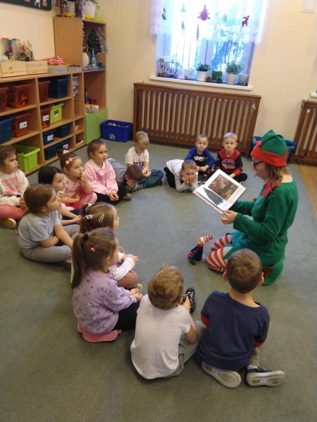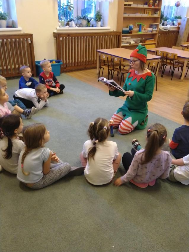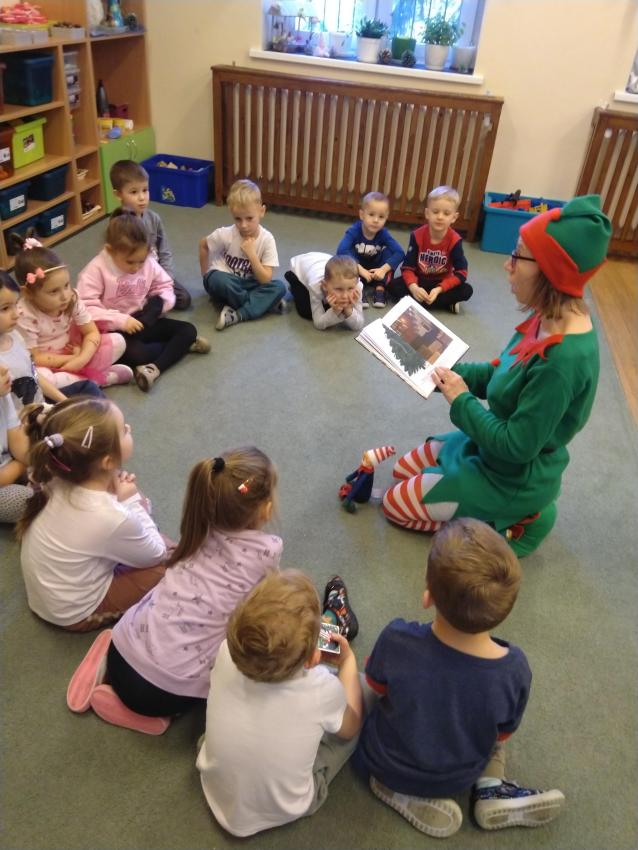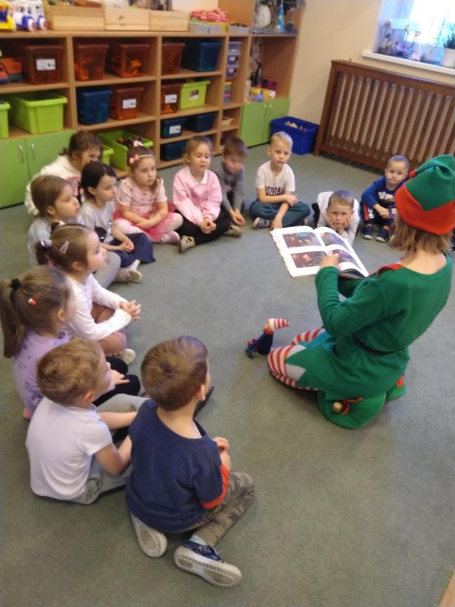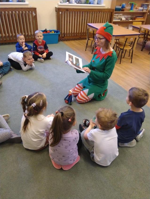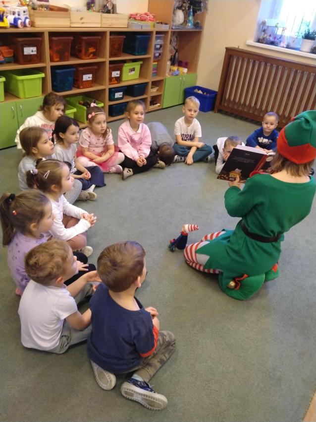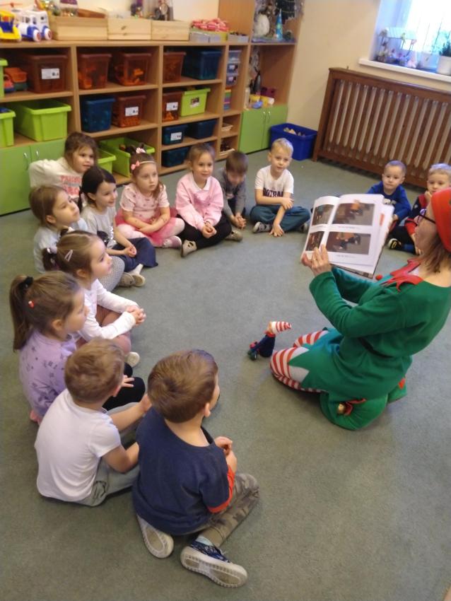 Dzisiaj odwiedził nas zielony świąteczny Elfik, który czytał nam ciekawe bajki. Było superrr! Zapraszamy kolejne Elfiki do czytania. Serio, serio! Oczywiście strój dowolny.