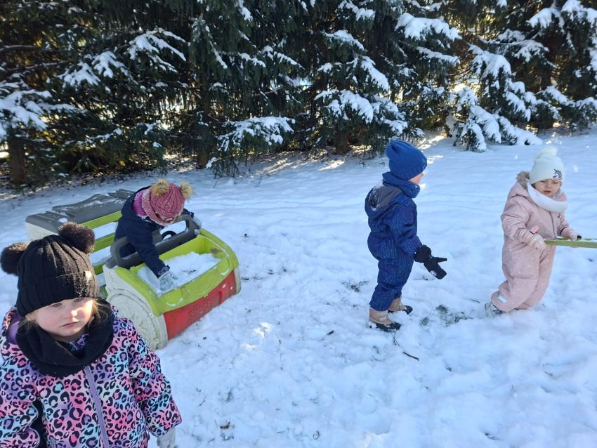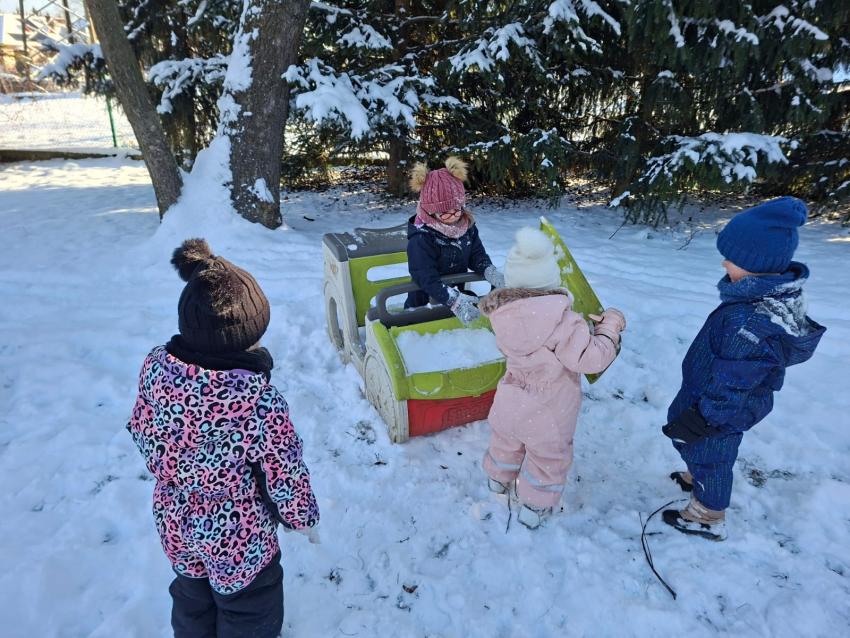 W tym dniu Pszczółki korzystały z pięknej, zimowej pogody i wspólnie bawiły się w ogrodzie przedszkolnym! Nie zabrakło wiele uśmiechów i radości!