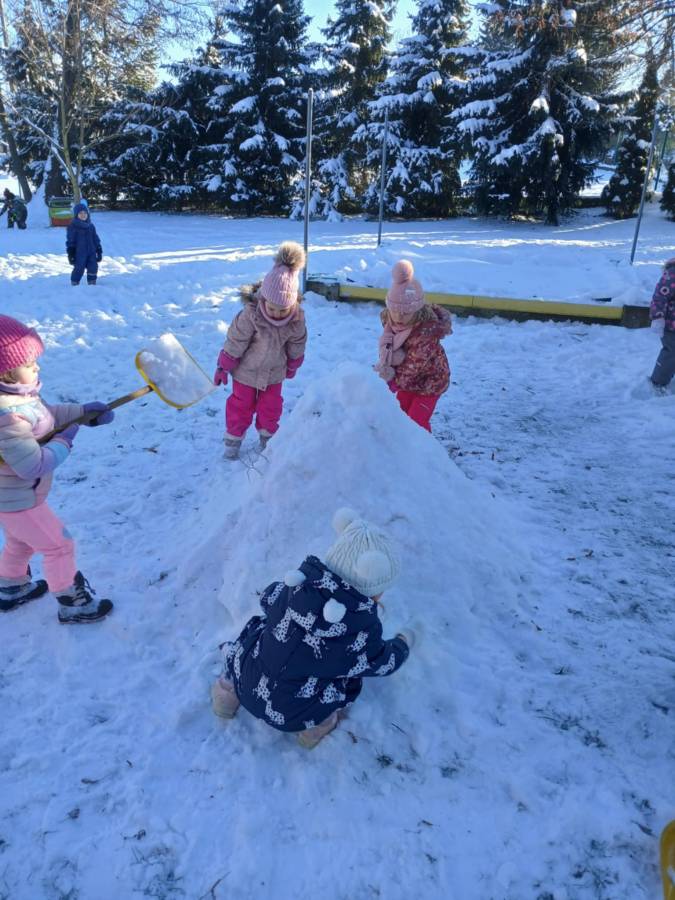 W dniu dzisiejszym korzystając z pięknej zimowej aury bawiliśmy się na śniegu w ogrodzie przedszkolnym.