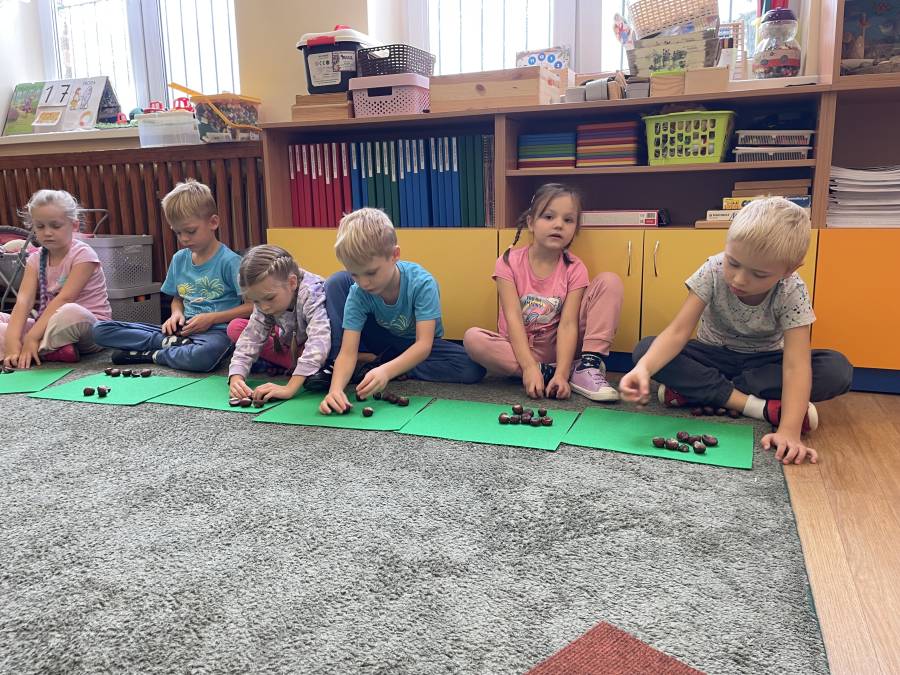 Podczas dzisiejszych zajęć poznaliśmy cyfrę 0. Dzieci w parach próbowały ułożyć się w poznaną cyfrę. Wykorzystaliśmy papierowe gazety do zabawy ruchowej. Ćwiczyliśmy także zmysł dotyku podczas spaceru na ścieżce sensorycznej