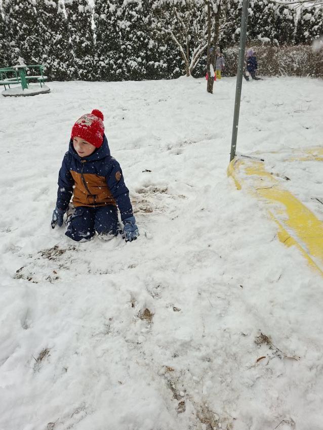Przedszkolaki ogromnie cieszyły się z pojawienia pierwszego śniegu. Szkoda, że tak szybko topnieje. Z entuzjazmem toczyły kule śniegowe, robiły aniołki, wydeptywały ślady i biegały po ogrodzie przedszkolnym, a uśmiechy nie schodziły ze szczęśliwych buzi. Mamy nadzieję, że biała zima wkrótce powróci.